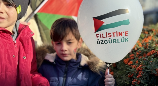 Ortaokul öğrencisi Muhammet Berat Tuzcu'nun "Filistinli Çocuk" adlı şiiri okuduğu etkinlikte vatandaşlar, İsrail'e tepkilerini dile getirdi.